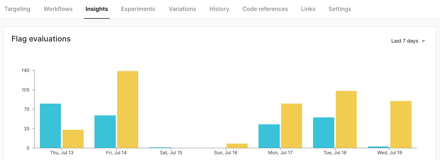 Something else we like about LaunchDarkly: it grants us insight into feature flag evaluations over time. We can very gradually roll out a change (for example, over a week) and confirm that customers are getting served the new functionality: