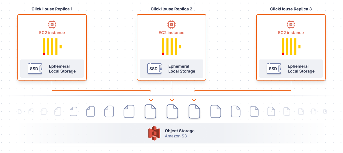 By default, ClickHouse writes data to the local disk, which, in most cloud environments, is expensive block storage. In order to manage cost, it makes sense to separate storage from compute and shift data to cheaper object storage. This reduces costs and unlocks elasticity (you no longer have to add disks as your data grows). But object storage exhibits high-latency making it impractical to serve low-latency queries from directly.