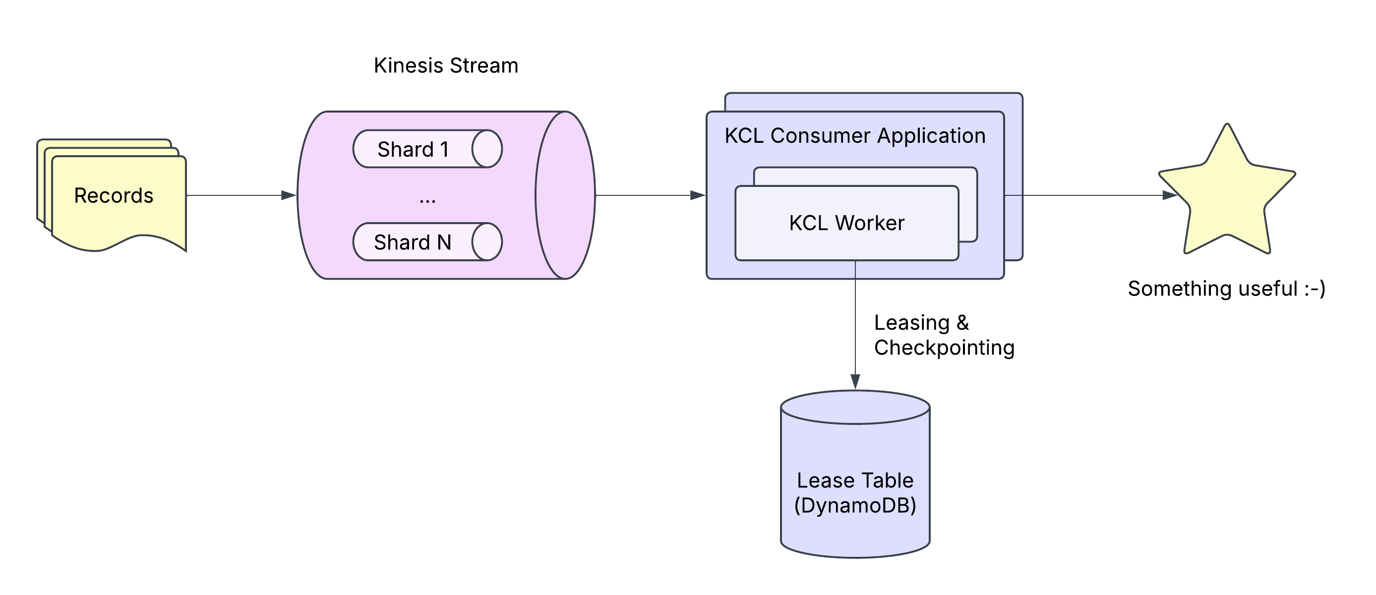 KCL consumer applications are complex. They coordinate using a lease table (DynamoDB), they count against their streams' registered consumers quota, and the official KCL implementations depend on Java. Each point contributes to complexity developing, testing, and deploying KCL-based applications.