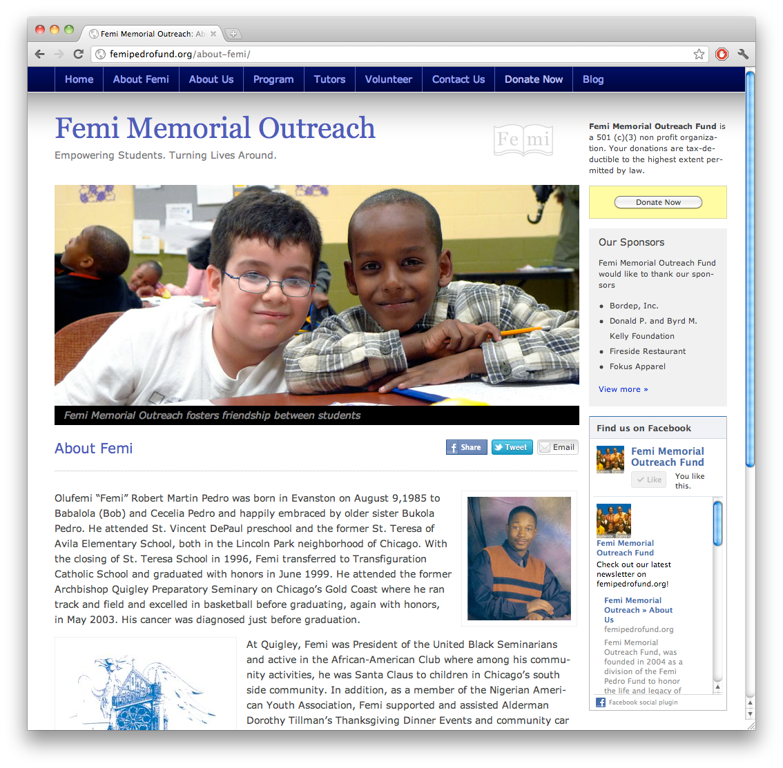 My current commission is redesigning the website for Femi Memorial Outreach Fund. I chose TextPattern for this project – They initially used WordPress.